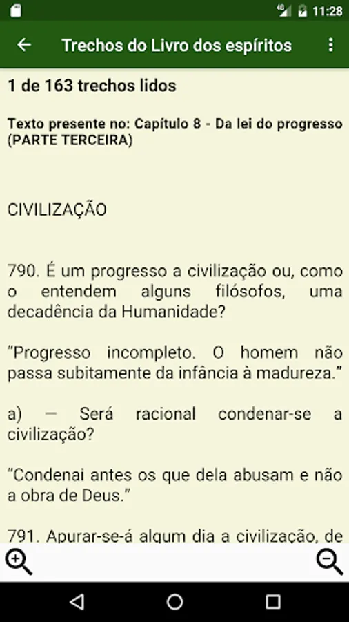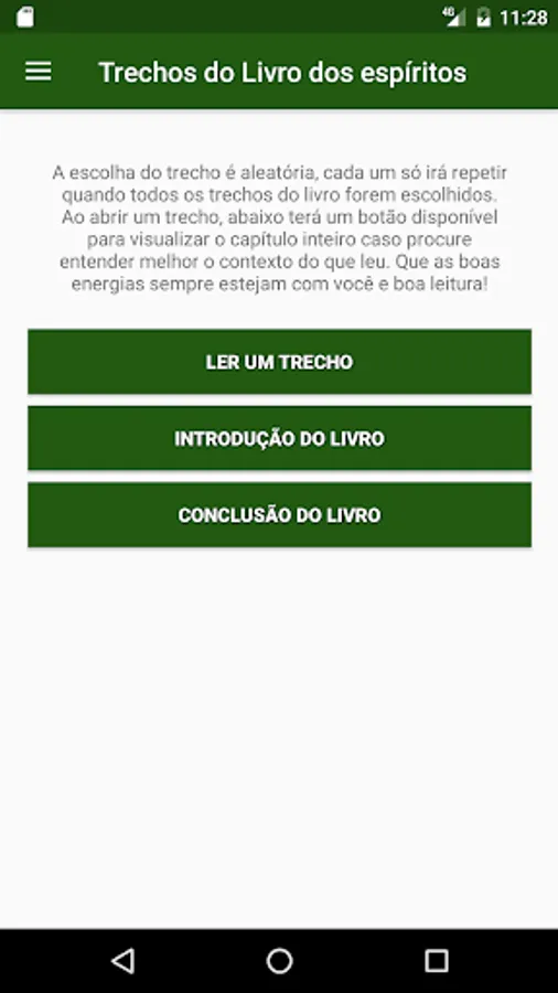 The application was created to stimulate the reading of the Book of Spirits at any time of the day.