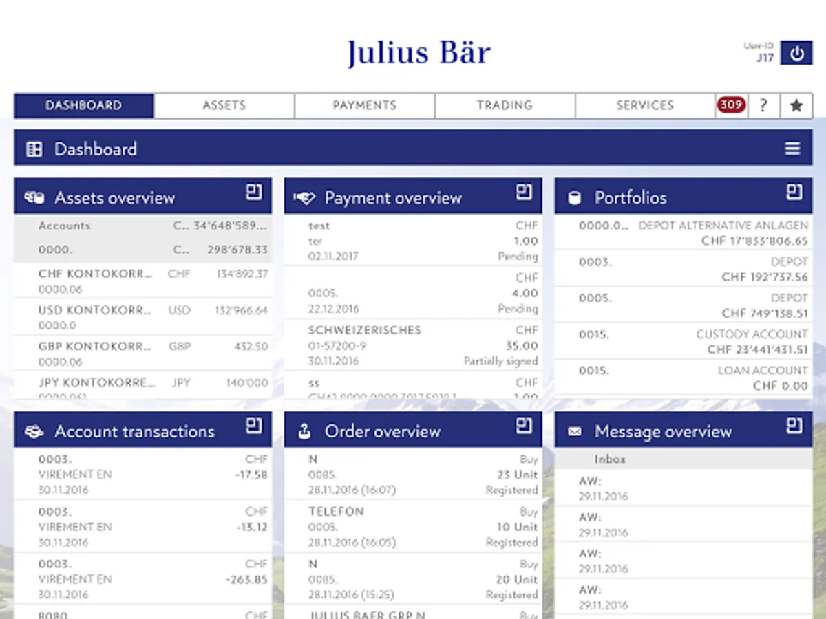 This service is accessible for clients of Julius Baer with a valid User-ID for e-Banking Switzerland (J00000).