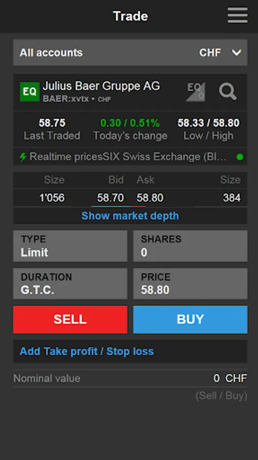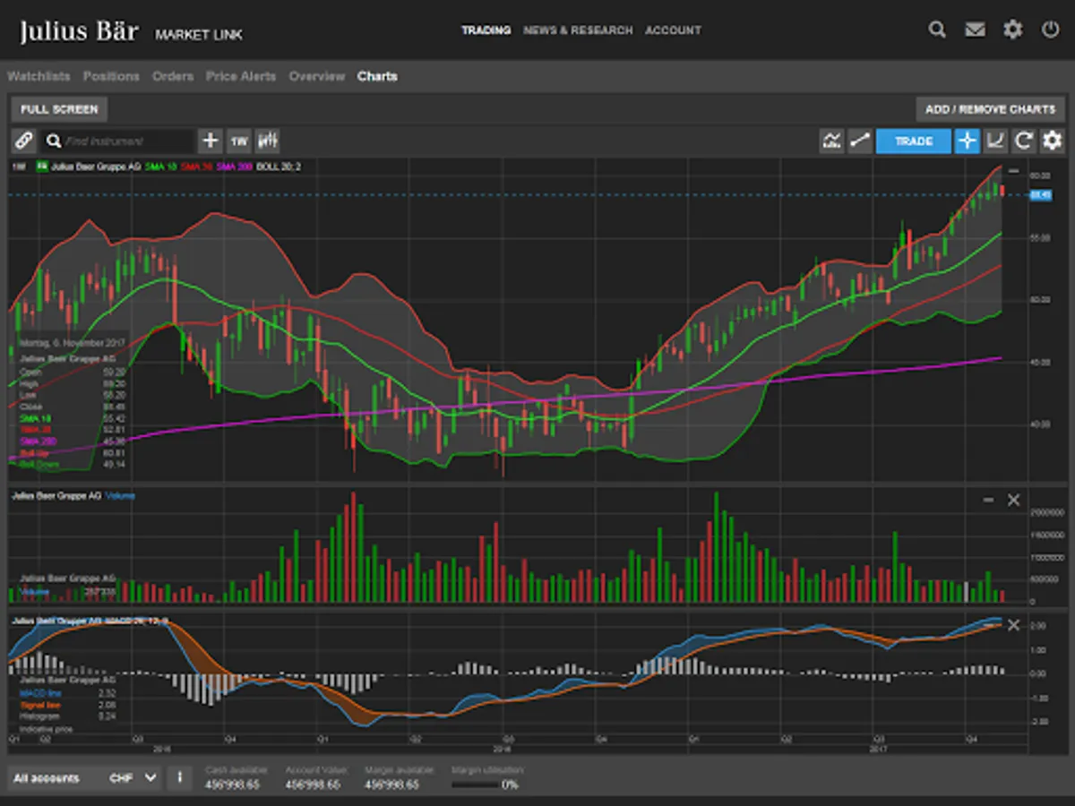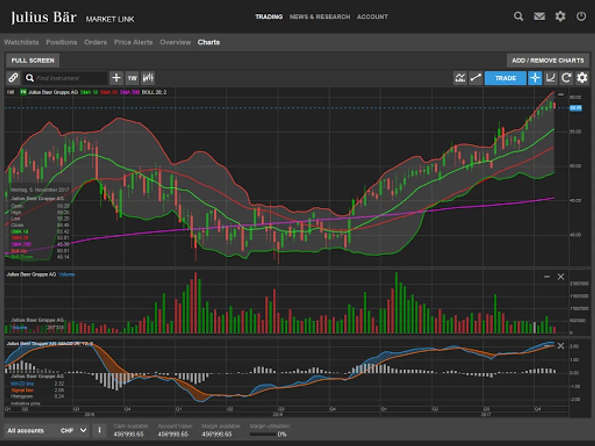 Access to Julius Baer’s online trading platform. With financial instruments across most asset classes, it offers you direct access to global financial markets 24 hours a day. As a client you can