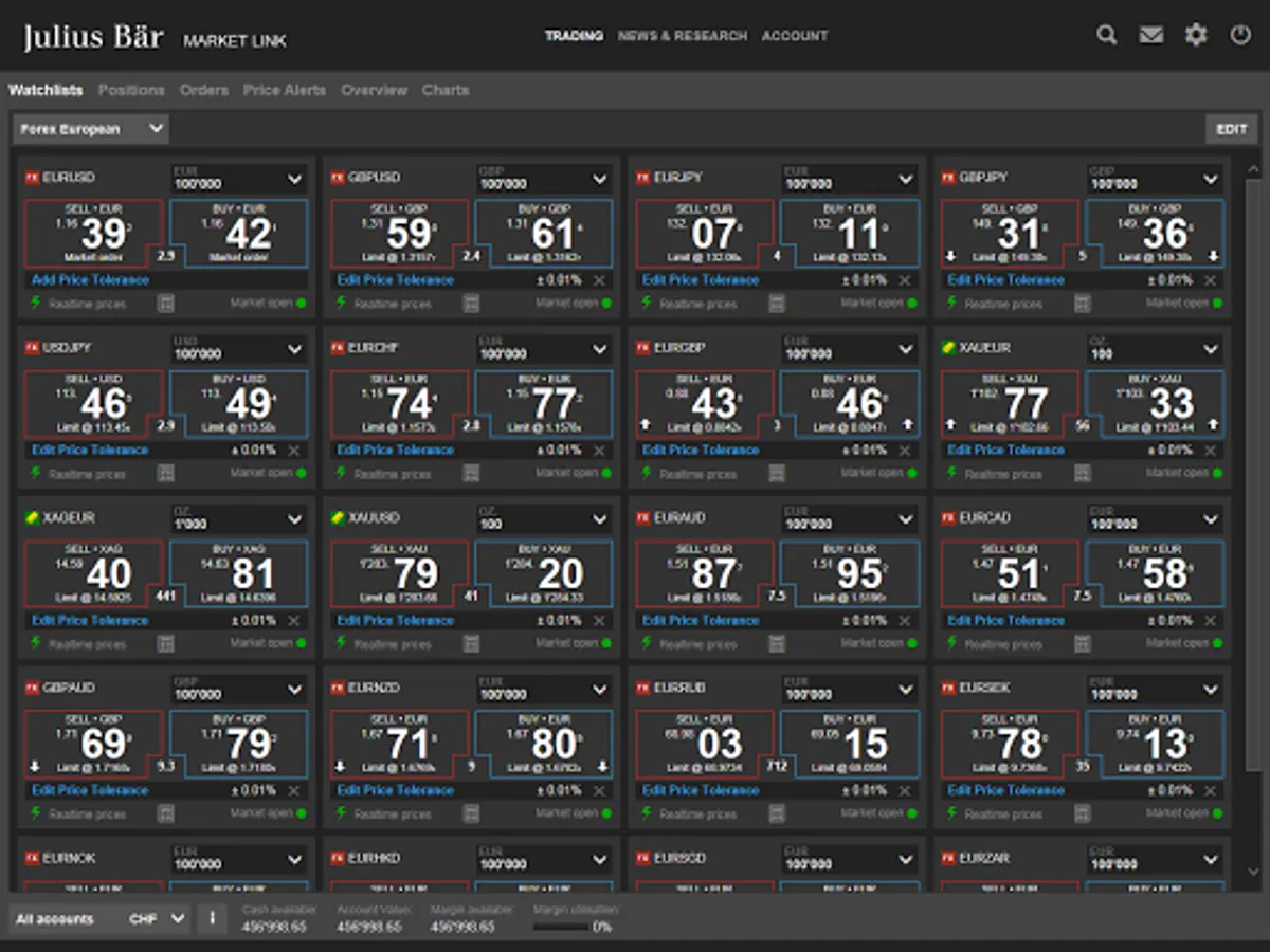 This service is accessible for clients of Julius Baer Switzerland with a valid User-ID for Market Link (0000000).