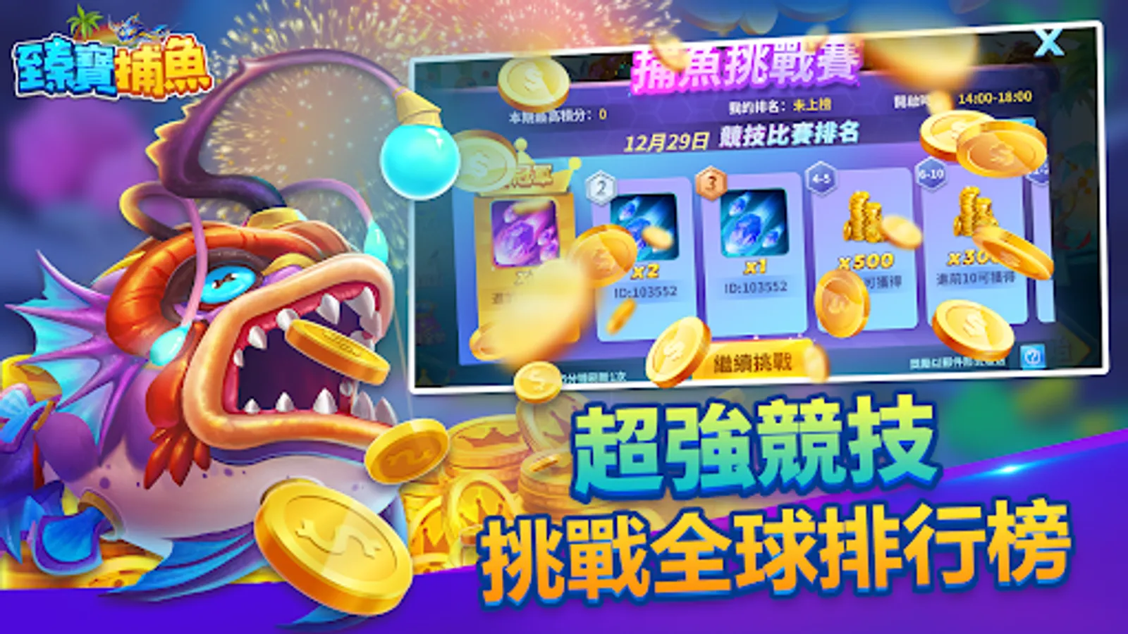 - 4 players on the same room to compete with multi-players in real-time, experience a classical arcade fishing game.