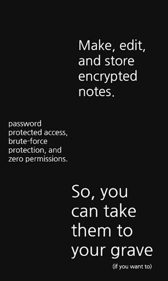 Want security without the worries? Crypt-O Notes is for you. Take your notes to the grave if that's what you choose to do.