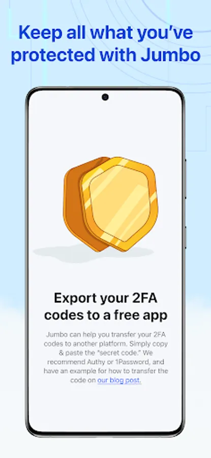 With Jumbo’s final release, users will be able to export their 2FA codes and view their archives from the app. See our blog post at withjumbo.com for more information!