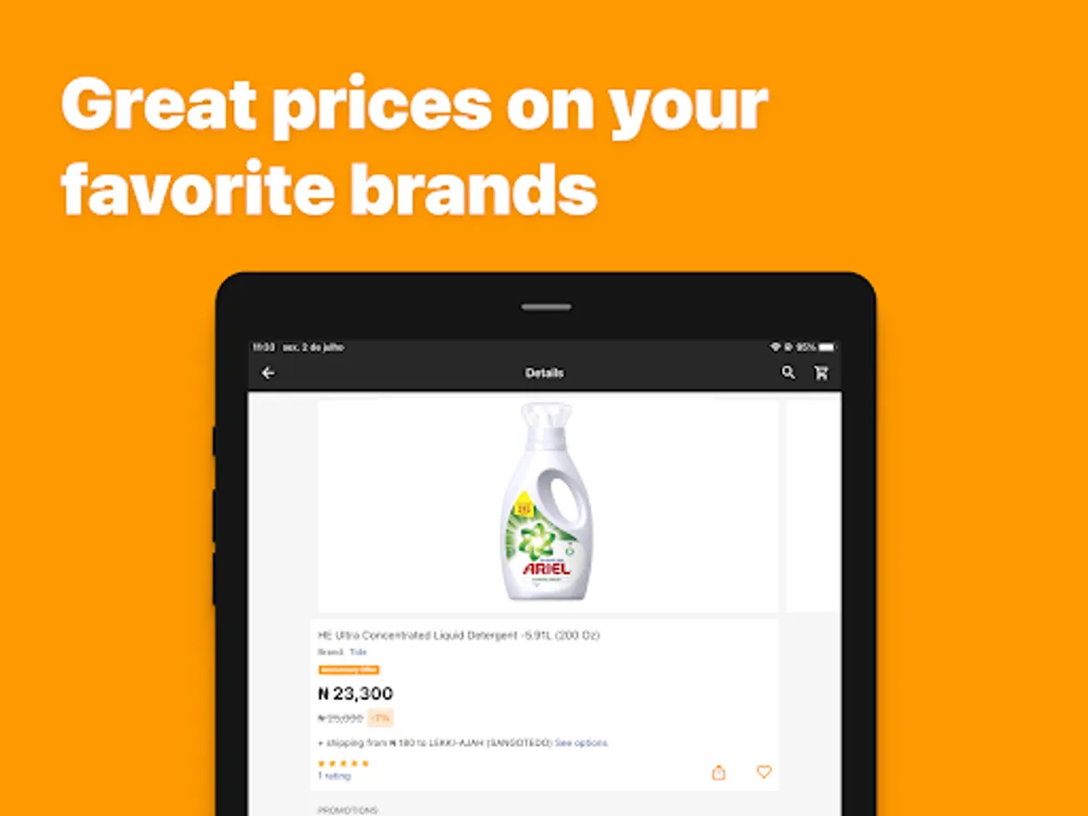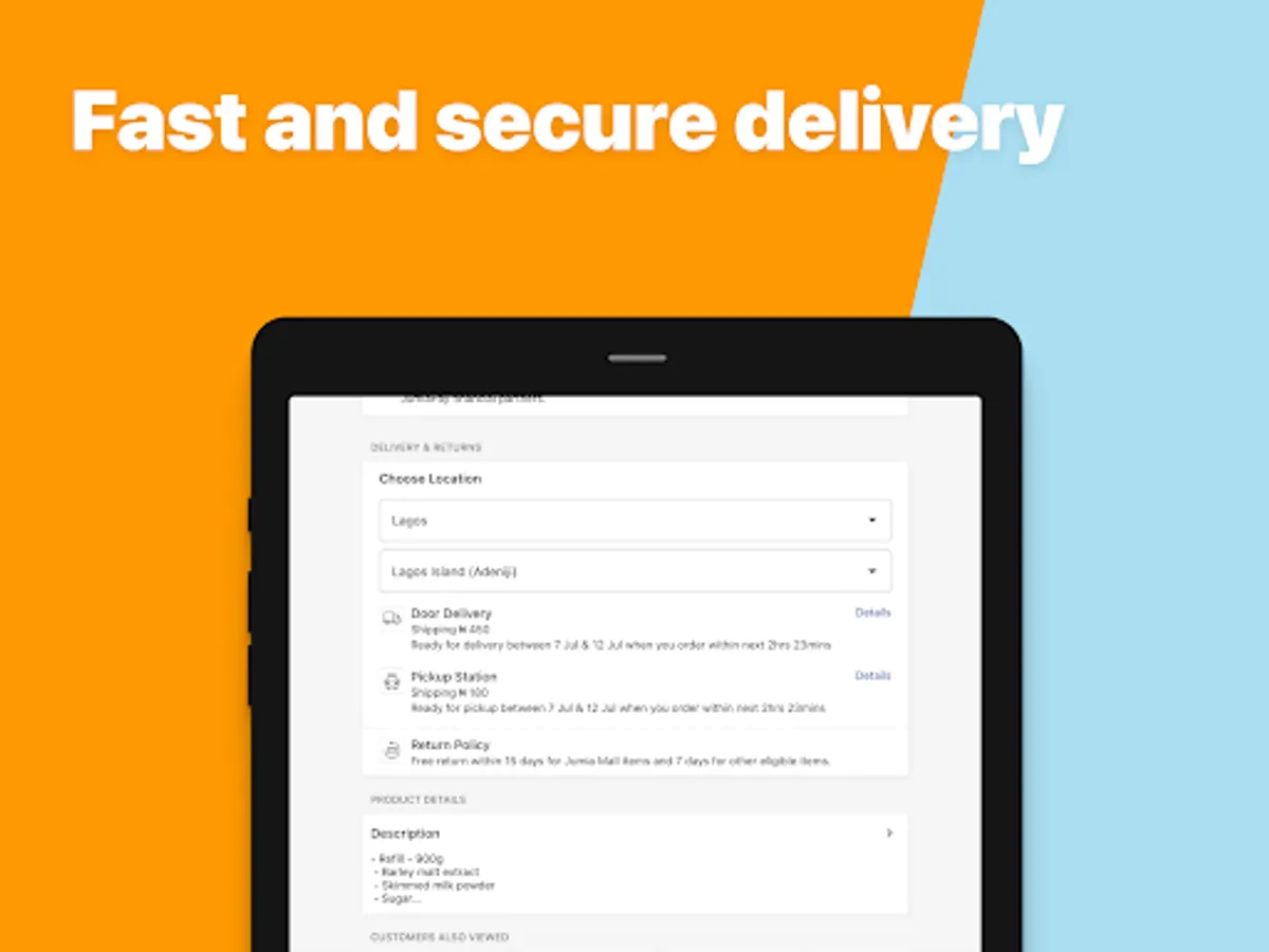 - Multi-device shopping: whether on a smartphone, a tablet or even on a desktop, Jumia app will keep all the products in your cart as long as you are logged in to your account
