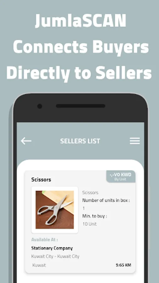 Buyers search for products in JumlaSCAN and find wholesale sellers in their local market. Buyers can then send purchase orders to sellers directly from JumlaSCAN with details of the quantities of the products that they want and the delivery locations.