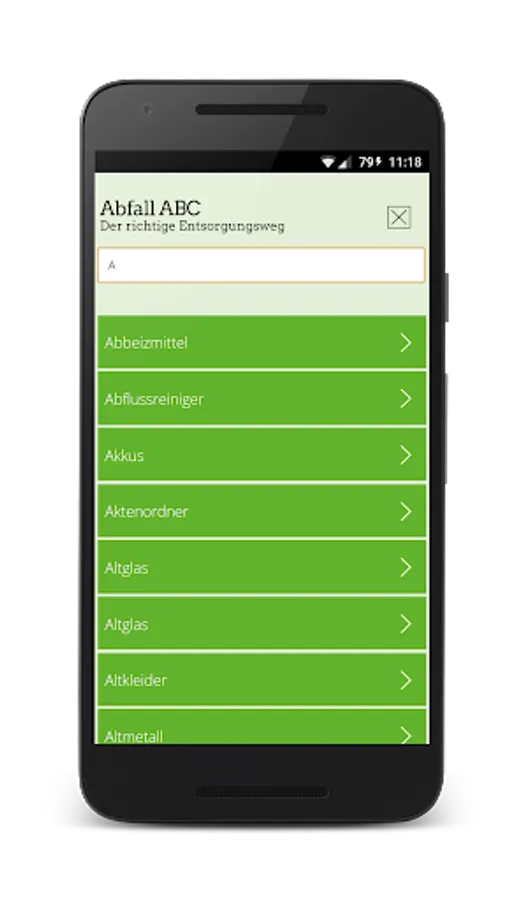 By way of the ABC waste, the citizen will find all the desired details of the type of waste, the disposal route, or e.g. the next relevant location.
