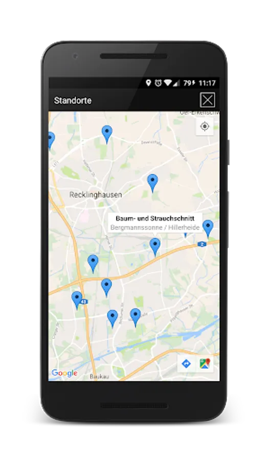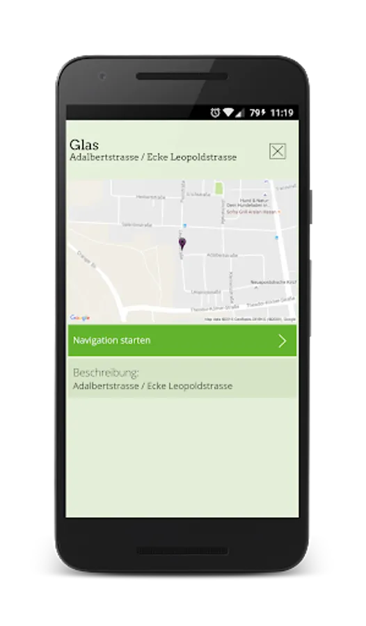 The app also navigates to the nearest recycling center and knows the opening hours and important location details.