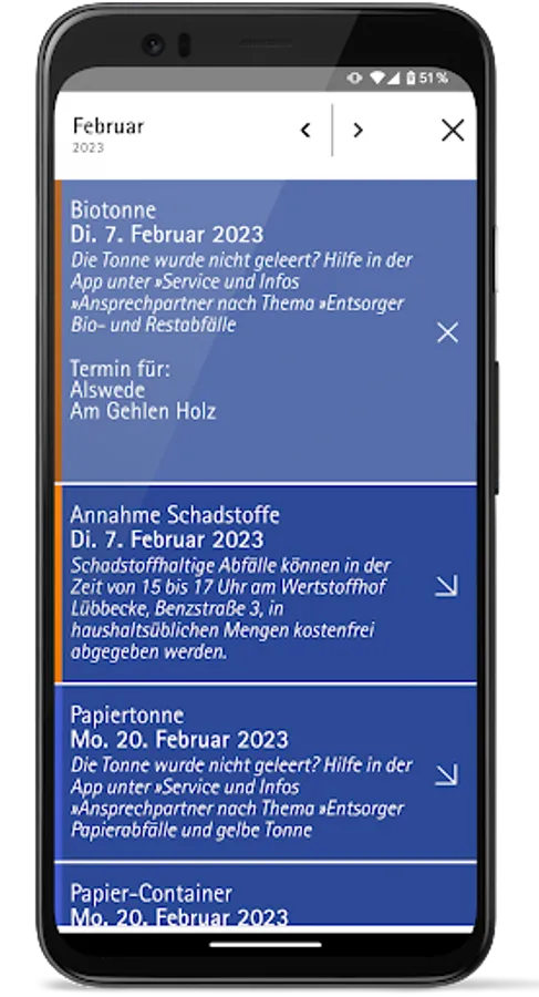 The free AbfallApp offers information around the topic of disposal. The app is a reliable reminder of every disposal date and is set up in no time at all:
