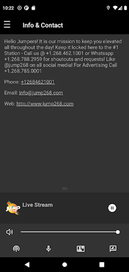Jump is all about the elevation of entertainment! Log on to our online, on air and social media feeds for the best experience - day or night! Wake up & Shake up in the morning from 7am to 10am with Merchy, DJ Trema Shakes up your morning from 9am to 12midday. Log on to the Original ova-drive with Cav every afternoon from 3 to 6pm, Just Play with Riddim Master every Friday from 3 to 6pm! Check our full line up on www.jump268.com!