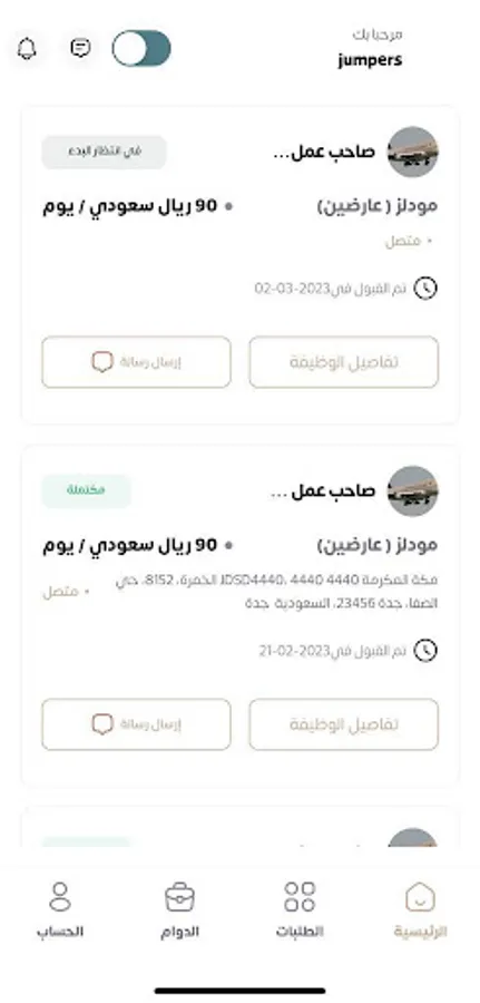 تطبيق يقدم خدمة الربط المباشر بين طالب الخدمة و الأشخاص الراغبين في الاستفادة من خدمات الأفراد في قطاعات مثل: (منظمين فعاليات، بودي قاردز، مسوقين ميدانيين، كومبارس، جماهير للاستديوهات، عارضين، أو أي مجال آخر يحتاجه العميل) و بين الأفراد ذوي الكفاءة في المجال او الأكثر ملائمة.