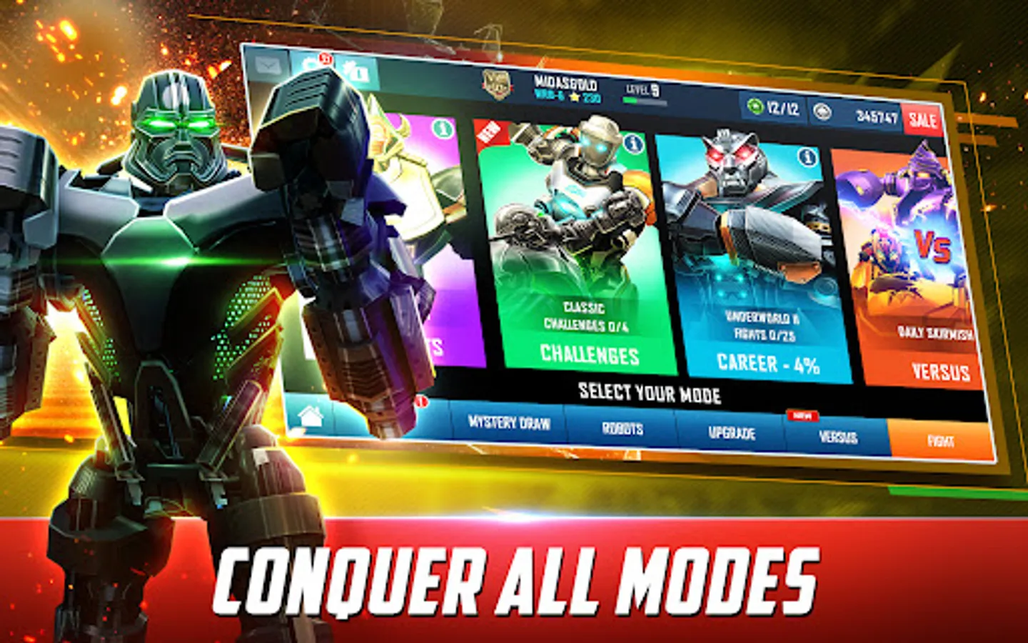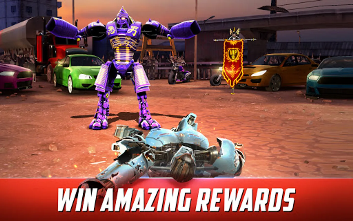 Join Atom, Zeus, Noisy Boy, and many more of your favorite Robots in the battle for supremacy of the Real Steel universe. This exciting action-fighting Robot Boxing and Brawler brings the heroic storytelling and spectacular action from over 100 years of Robot Fighting on to your mobile device! Top the Leaderboards, claim the Championship title and reign supreme as the Ultimate World Robot Boxing Champion. Win big in Versus Leagues & Global Tournaments.
