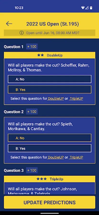 TAKE SIDES. Each game is a set of questions each with two sides followed by two bonus point boosts and a twist. Earn points for each correct pick. DoubleUp and TripleUp for bonus points. Carefully assign a FinalPlay point value. If you’re right, you receive the points. If you’re wrong, you lose them.