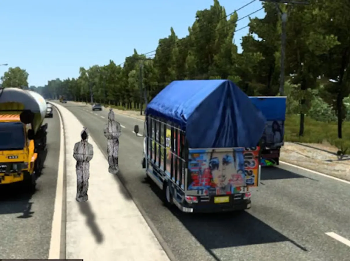 You are a real truck driver. Delivering pocong passengers from cities to other city terminals through amazing places and sights in Indonesia.