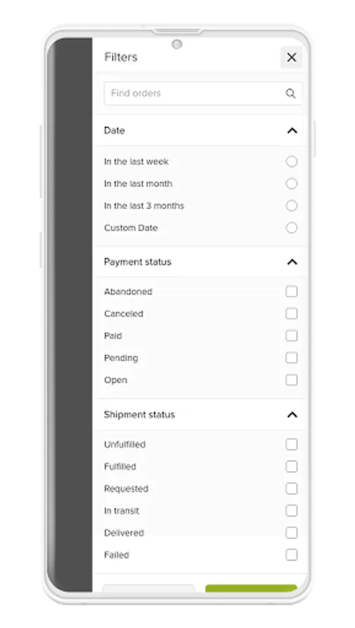 View, search and filter through your store's orders, see their details and update their history, payment and fulfillment statuses and always be up-to-date with notifications informing you of any new order or status change.