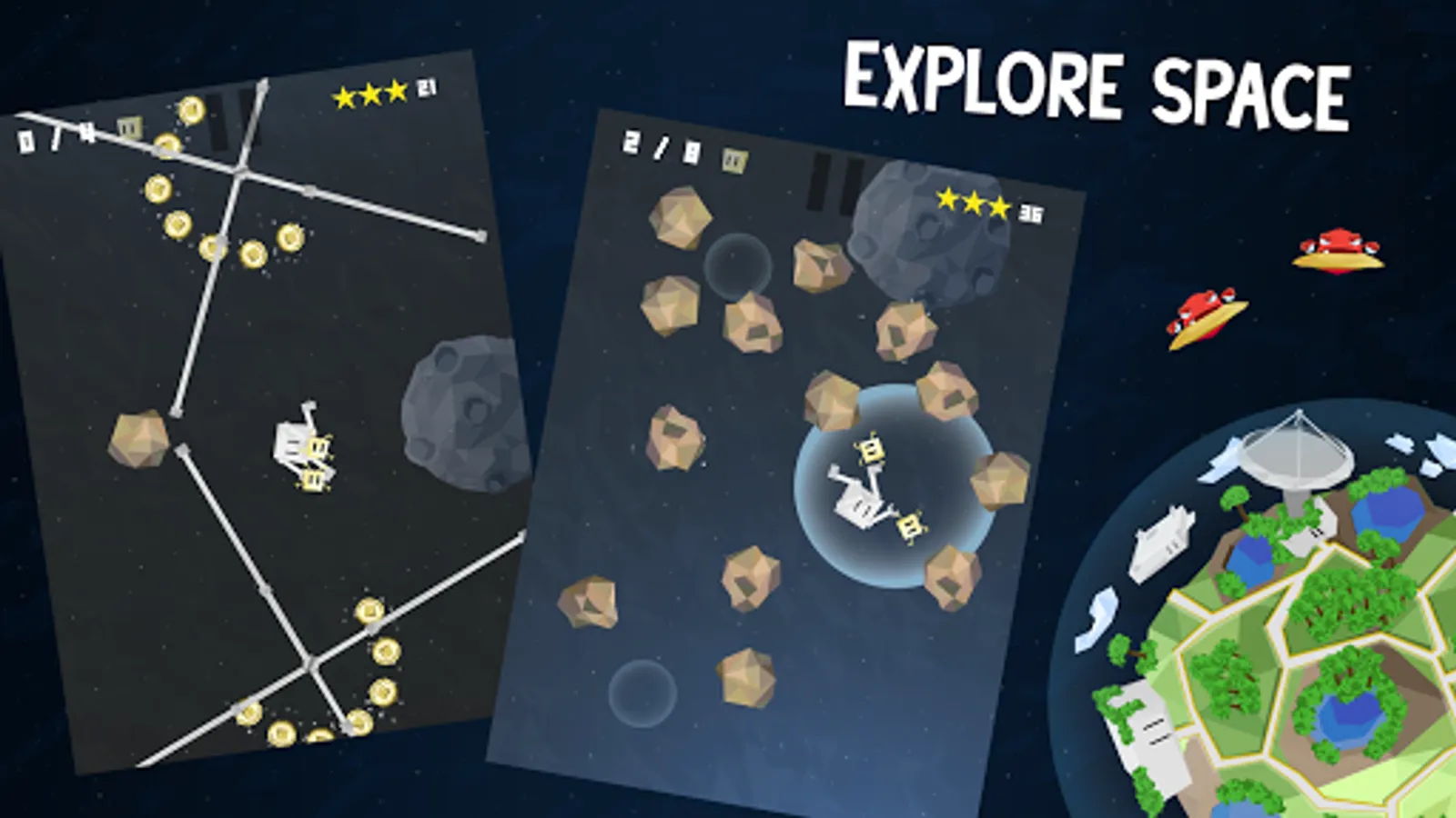 Explore space in an adventure that will test your skill and brain with lots of obstacles and puzzles. Enjoy the physics based gameplay while floating and using your thrusters to move around.
