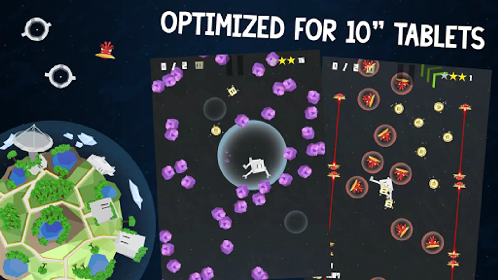 Avoid pieces of space debris, asteroids, lasers, alien forms of life and lots of surprises in your journey across space.
