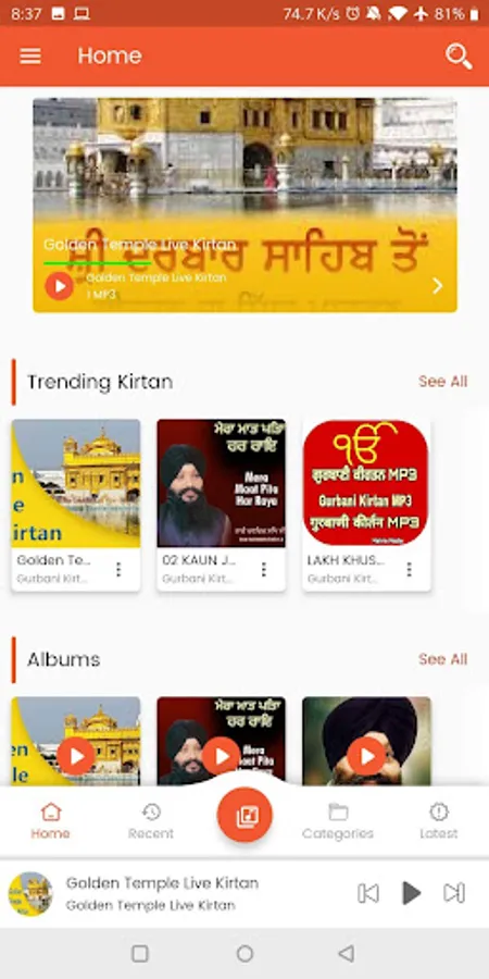Gurbani is composed of two words: 'Gur' meaning 'the Guru's' and 'bani' meaning 'word'. God`s Word mediated through the Gurus or Word on which the Gurus had put their seal. A huge collection of Shabad, Gurbani, Kirtan, Path and Simran.This application the best listens "Shabad Gurbani Songs". 'Japji' is a universal song of God composed by Guru Nanak Dev Ji, the founder of the Sikh faith.