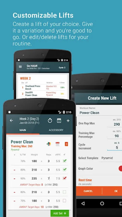 With the Go HAM - 531 Calculator, you can customize your workout and calculate your numbers based on your 1-RM lifts. Simply enter your 1RM's into the app to calculate your training maxes, and you're good to go.