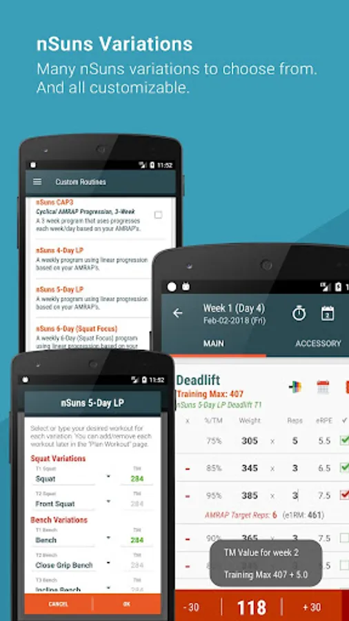 💪 nSuns Routines - CAP3, 4-Day LP, 5-Day LP, 6-Day (Squat and Deadlift Focus).