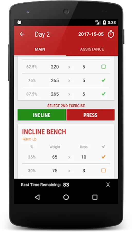 • Easy Navigation. Select your days and swipe through your working and assistance workouts.