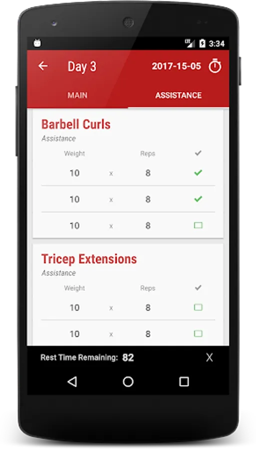 • Built-in persistent stopwatch to keep track of your rest times.