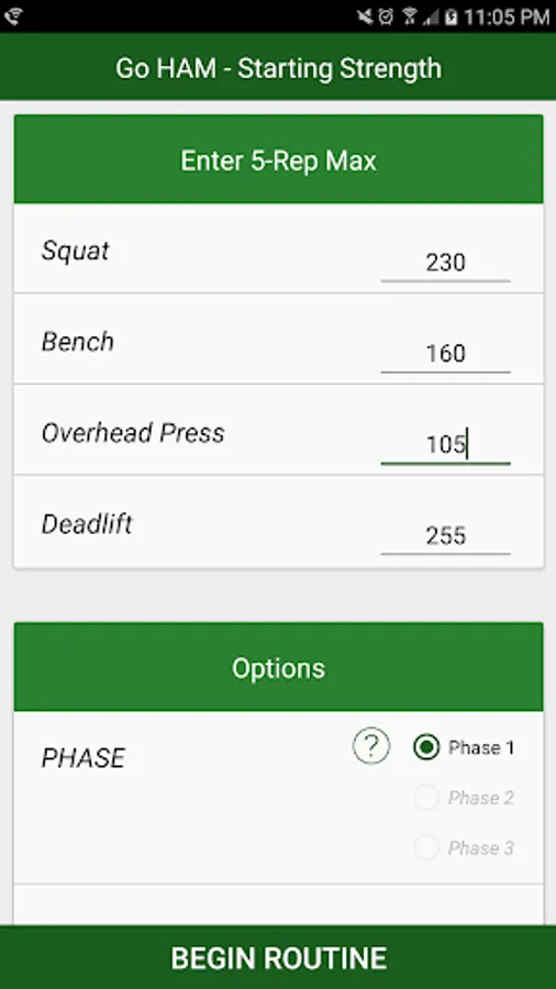 With the Go HAM Starting Strength Calculator app, you can customize your powerlifting workout and calculate your numbers based on your 5-RM lifts. Simply enter your 5RM's into the app and you're good to go.