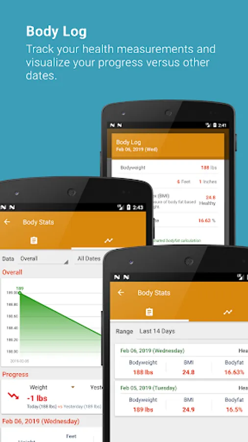 💪 Body Log. Log your weight and body measurements each day and calculate estimated BMI and body fat that can be viewed historically and by charts.