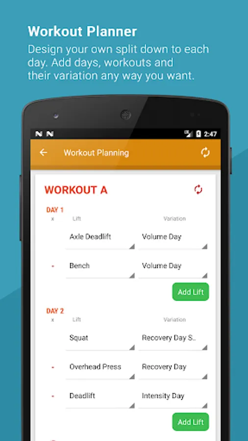 💪 Easy Navigation. Select your days and swipe through your working and assistance workouts.
