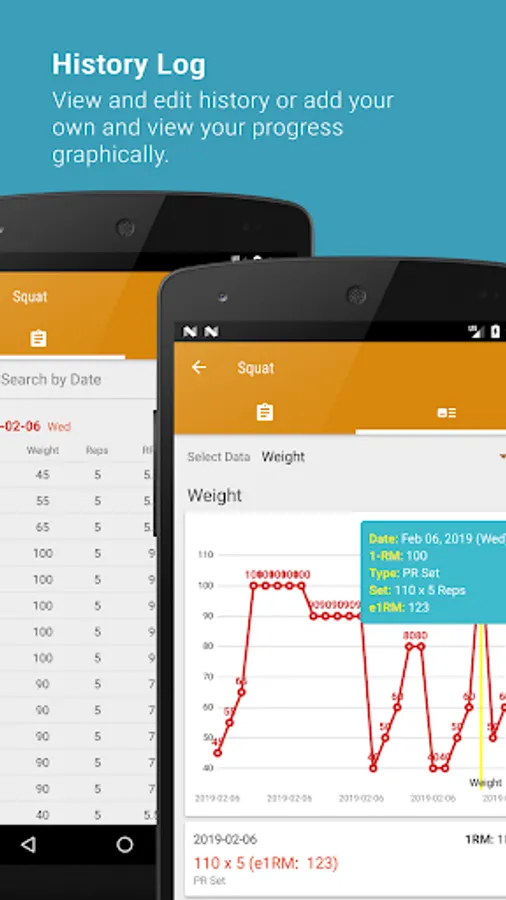 💪 Color coordinated notes history log. Deload, warm-up, PR Sets and working sets are color coded so you know which history log were performed.