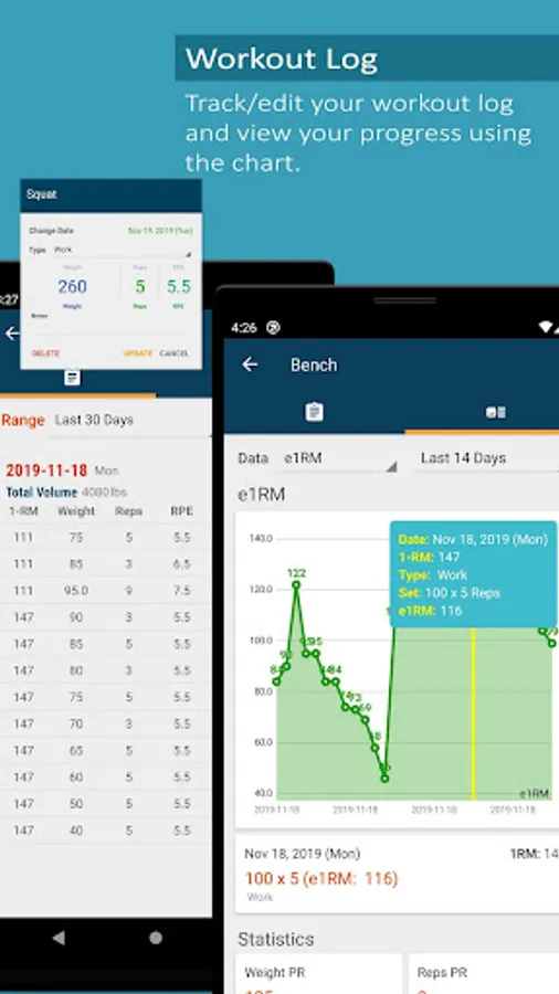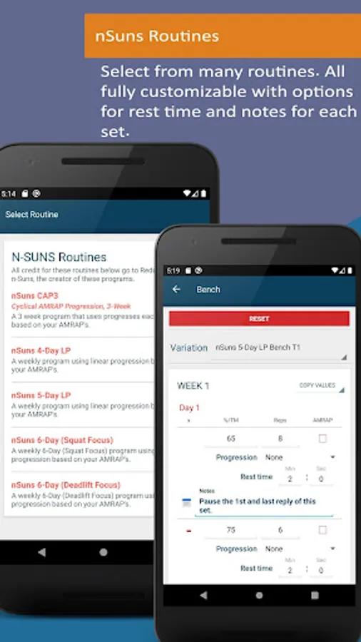 💪 Automatic user-defined rest timer after each set. Every set is fully customizable with the option to use a master rest timer that affects all.