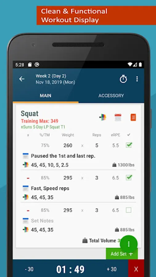 💪 Never forget the set you're in by using the check-boxes that keeps track of your set and progress.