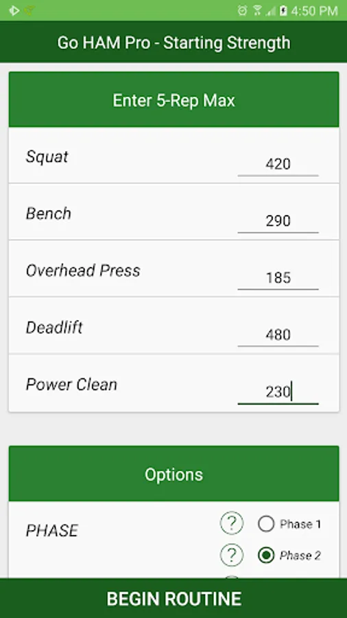 With the Go HAM Starting Strength Calculator app, you can customize your powerlifting workout and calculate your numbers based on your 5-RM lifts. Simply enter your 5RM into the app and you're good to go.
