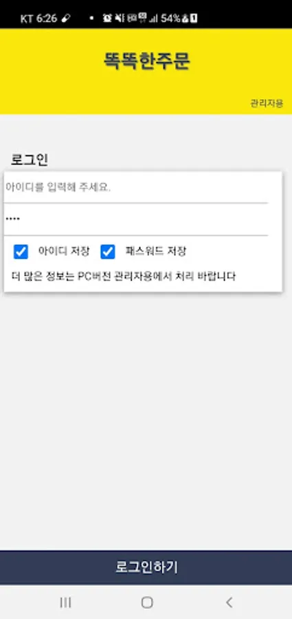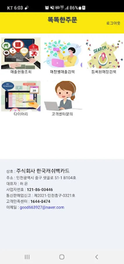 Application for administrator of order app operated by Korea Cashback Card Co., Ltd.
