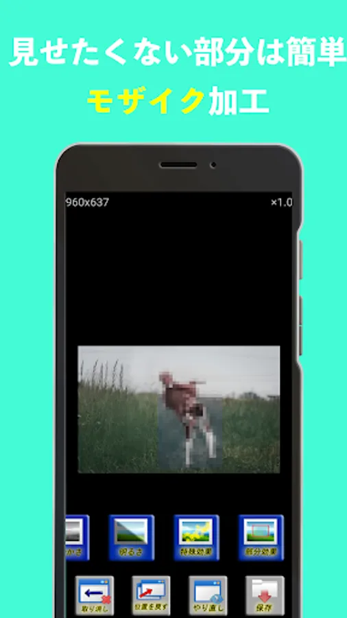 -Partial effect: You can add special effects such as mosaic and blur to a part of the image.