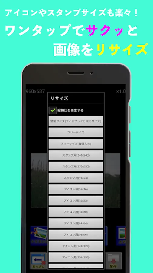 -Resize / Image reduction: You can reduce the image or change the image size such as enlargement. Please use it when sending to a feature phone that needs to be resized, or for creating icons and line stamps.