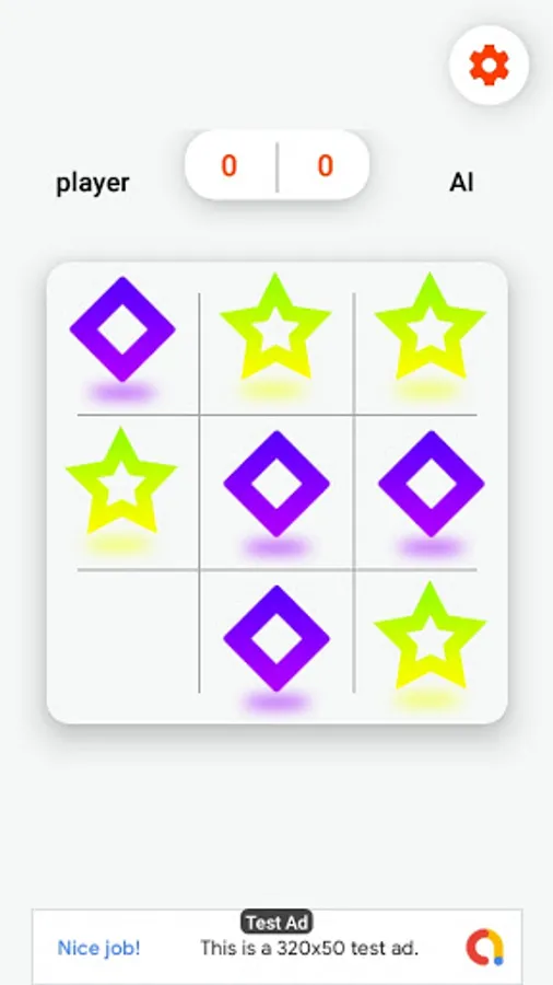 tic tac toe game played by two players can play either with the robot or with your friends, X and O, who take turns marking spaces on the 3 × 3 grid. The player who manages to place their three marks in a horizontal, vertical or diagonal row wins the match. This fun game is simple for players of any age. with an elegant and charming UI design ..