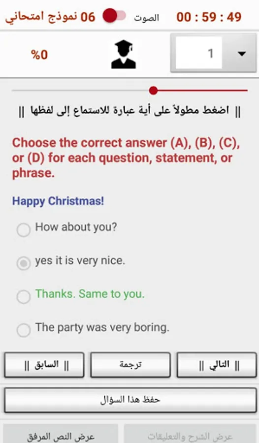 🔸️ The possibility of entering the exam imitation, so that the user chooses any previous form to try to sit for the exam in it, and any question can be translated within the imitation, as the application tells you the correct answer while solving each question and your final result.