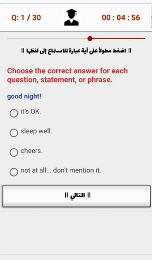 The application selects 30 random questions of difficulty from real samples obtained from a group of prestigious universities and institutes to be able to assess your level of English.