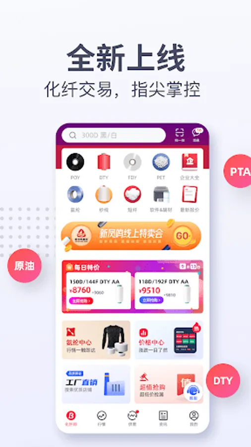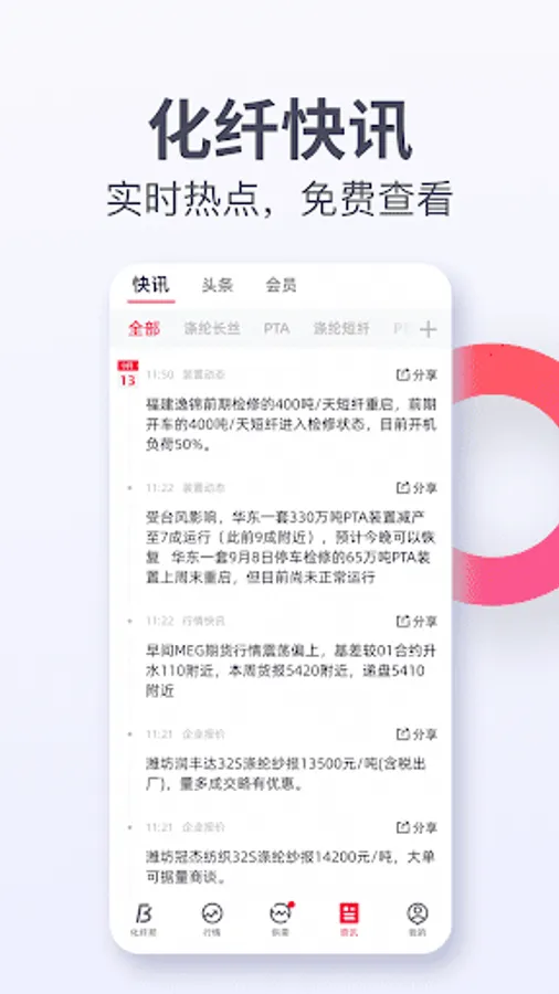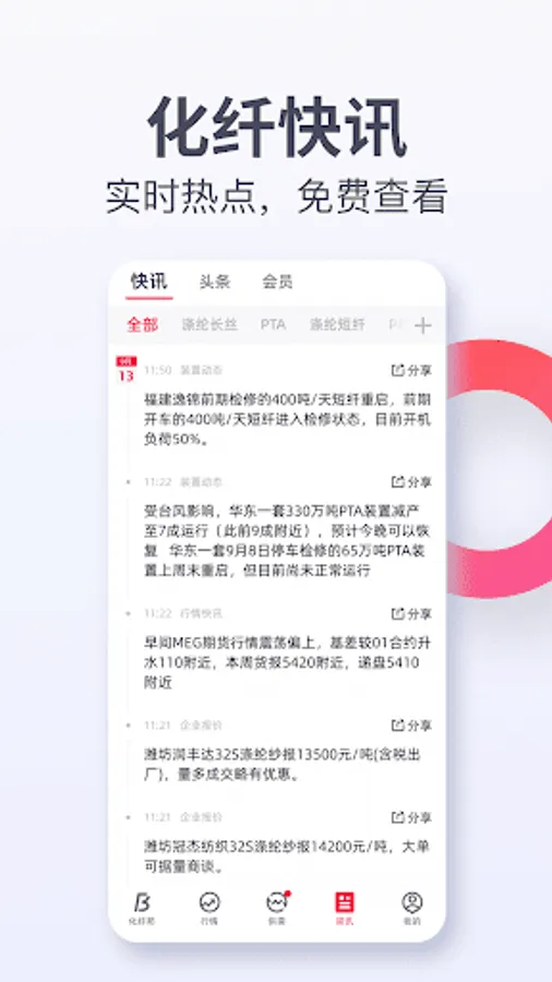 Provide timely and accurate chemical fiber information and real-time market transaction broadcast of various products.