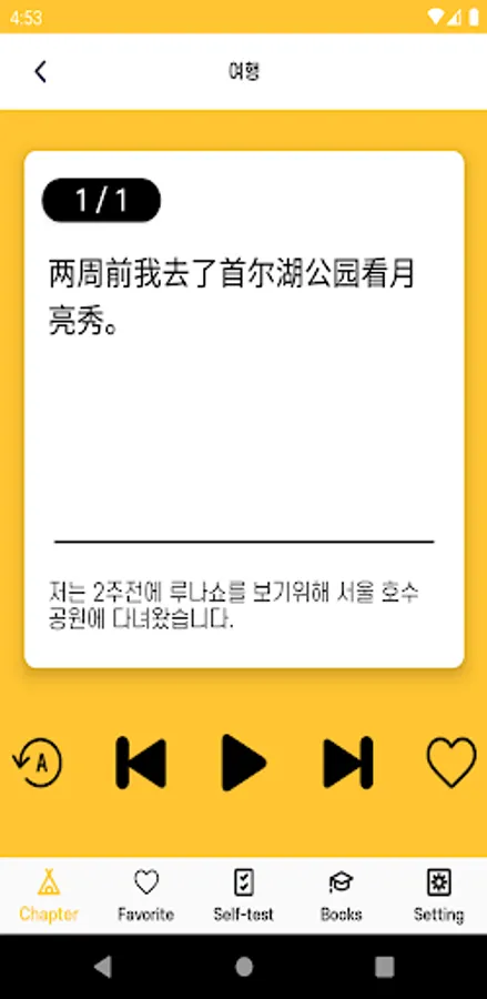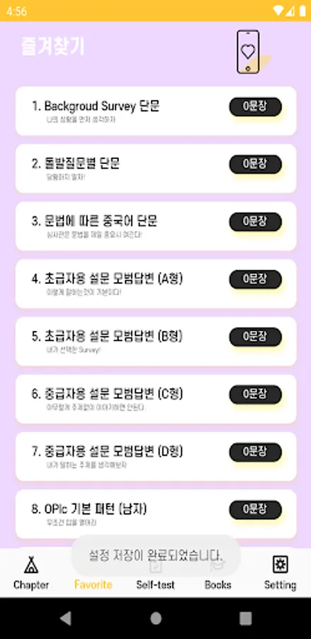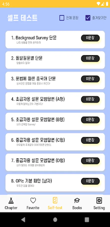 In each chapter, select the sentence you want through the favorites function and create an answer sentence to memorize it directly with your mouth through selection and concentration.