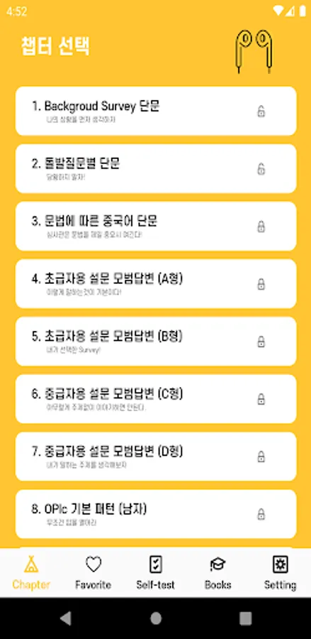 A total of 14 books (11 OPIc books, 3 living Chinese books) of 6000 sentences & MP3 are included, so it is an app worth owning.