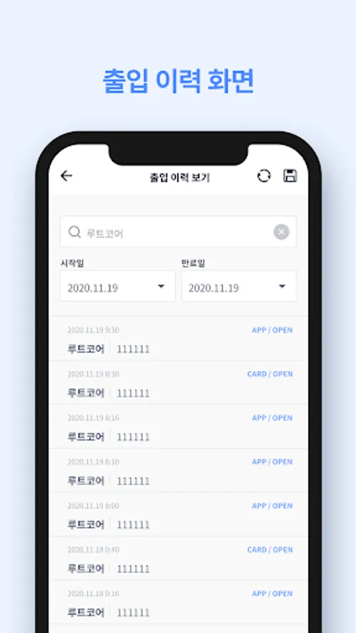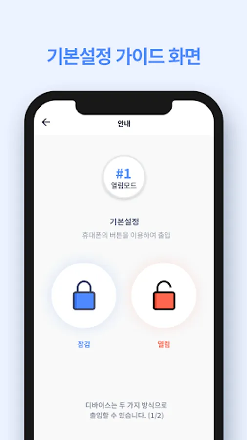 도어락의 상태확인, 도어락 문열림, 도어락 출입이력을 확인할 수 있습니다.