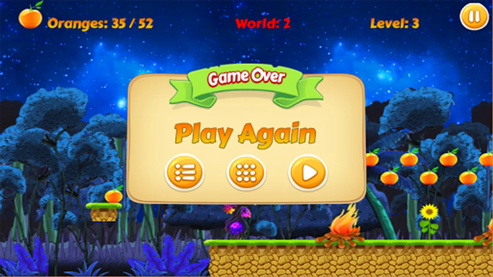 2. Collect oranges as many as you can, without fall off the ground.