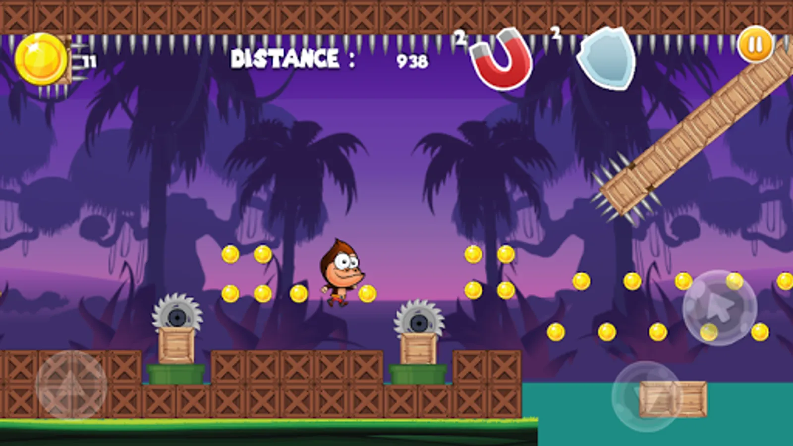 Super Monkey: Chimp's Great Adventure has several challenging levels with plenty obstacles and enemies! Super Monkey has several skills that help him overcome all challenges he will encounter.
