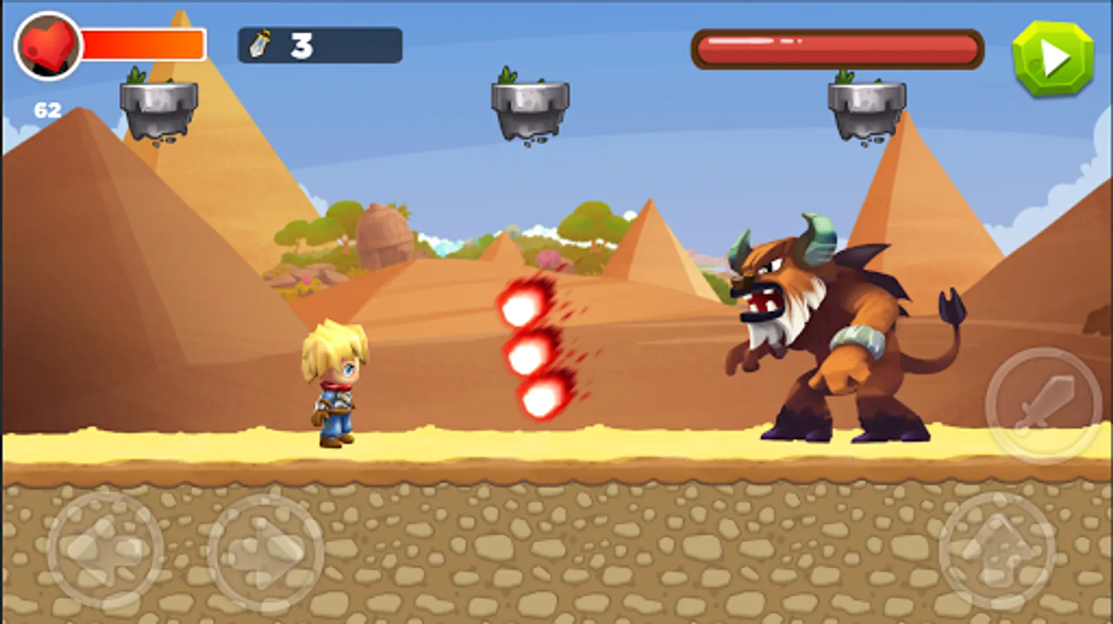 3 BIG BOSS in 3 beautiful worlds: Forest-Desert-Cave world.