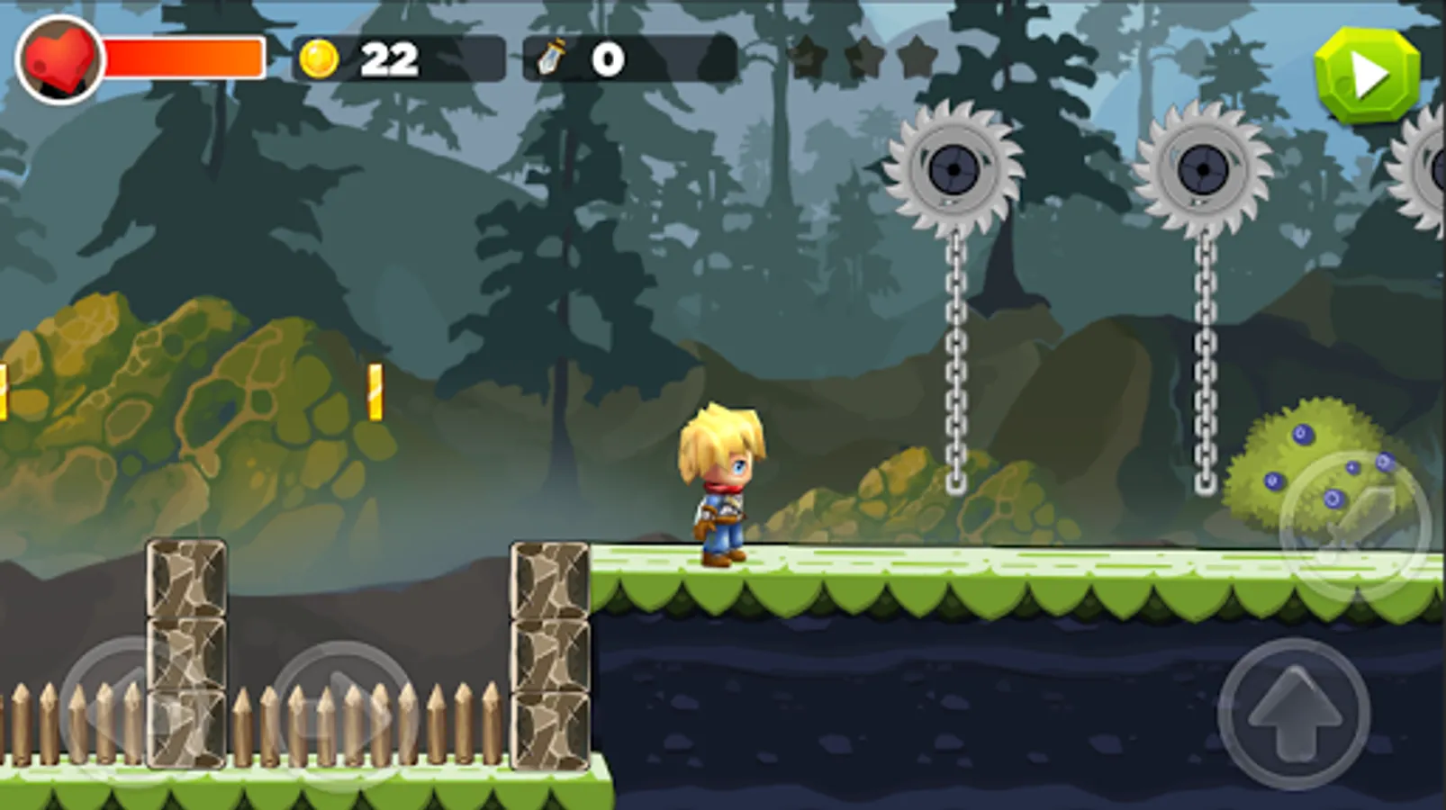 RUN, JUMP, DOUBLE JUMP to across many obstacles as the Abyss, Fire… Throw Knife to kill monsters