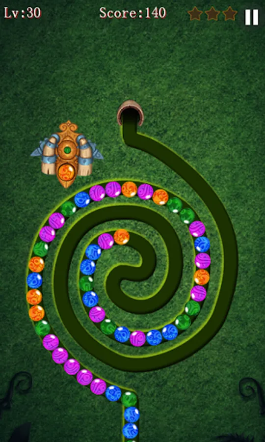 - Shooting to match three or more colored marbles.