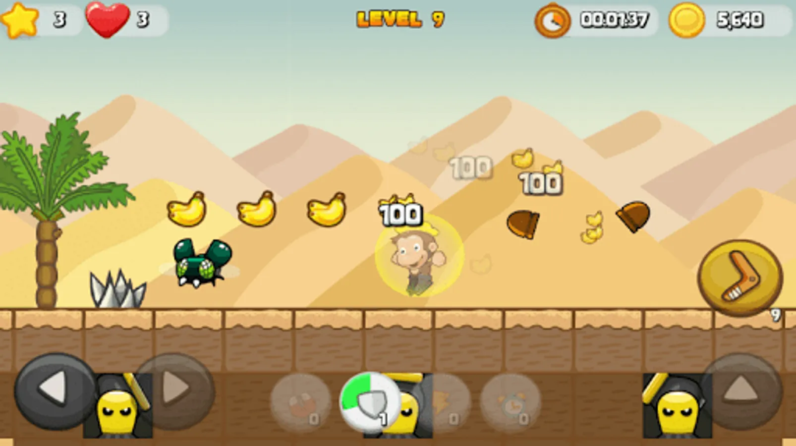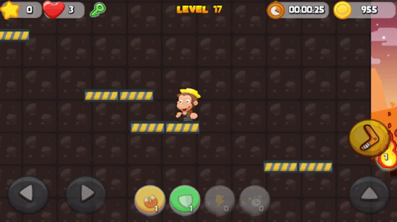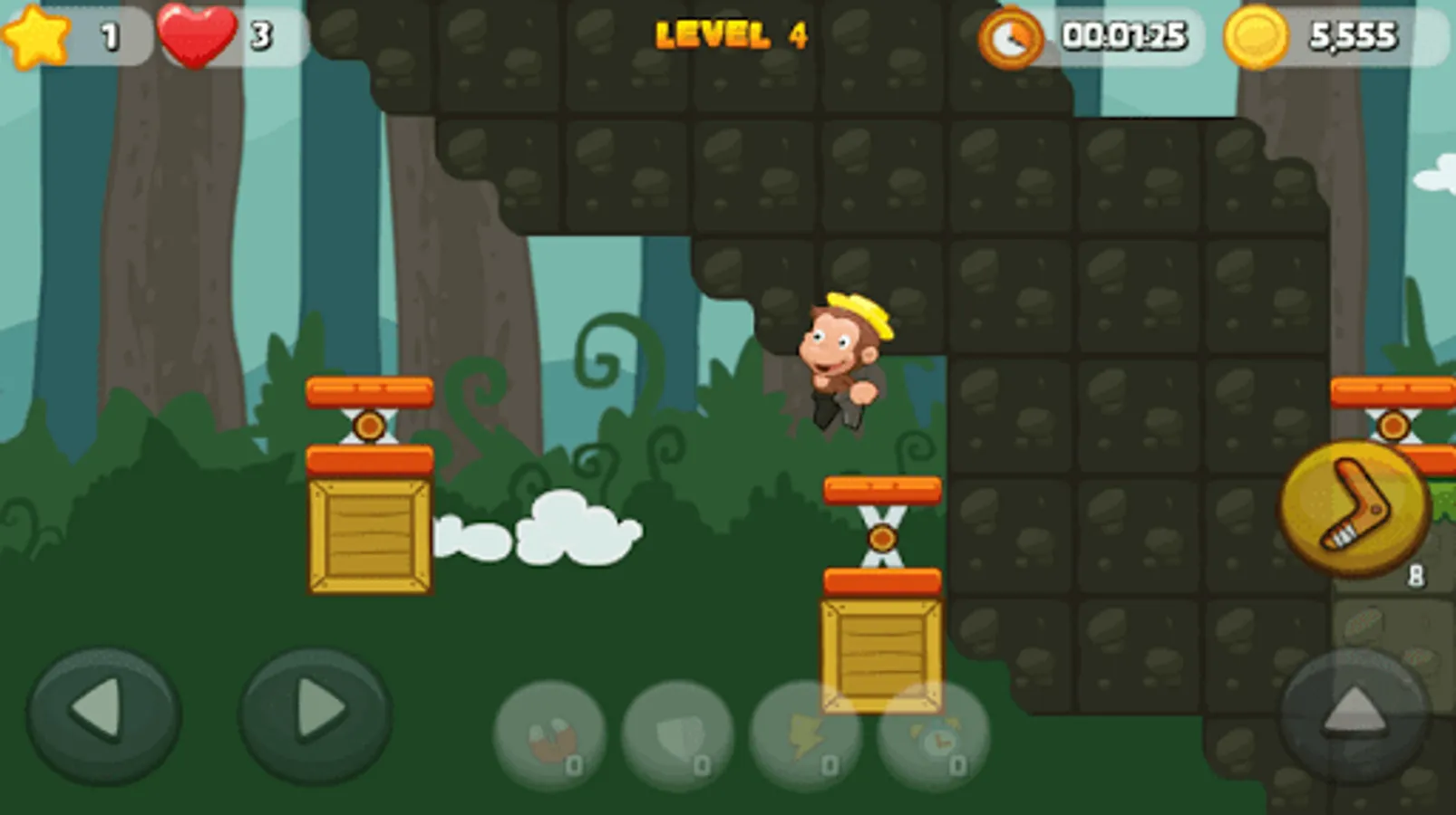 A baby monkey was born destined to become a jungle king. But before that, a jungle elder wanted to see his wisdom. This little monkey king will go through the lost city to collect the gold. It is a 'magic kingdom' heritage that brings glory to all dwellers of the jungle. Even though this magical star is hard to find, this adventure island is full of bananas 🍌. Monkey Kong loves bananas very much, because bananas are very soft and sweet.