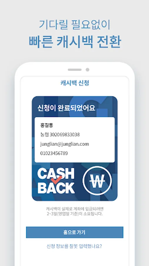 If you apply for cashback after entering your account information, it will be processed within 2-3 days.