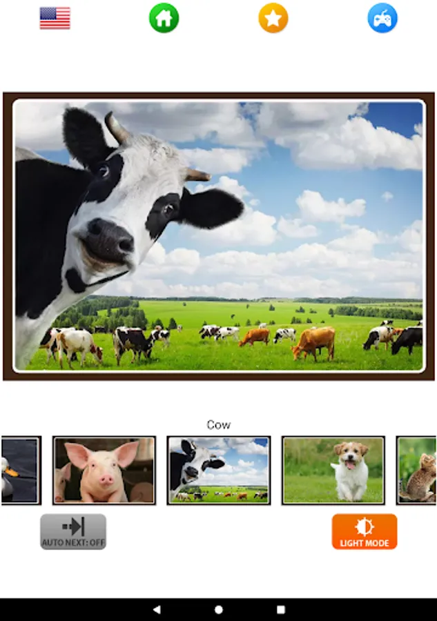 Kids can play the game "What animal is it?", which can teach them to recognize the animals and their sounds.